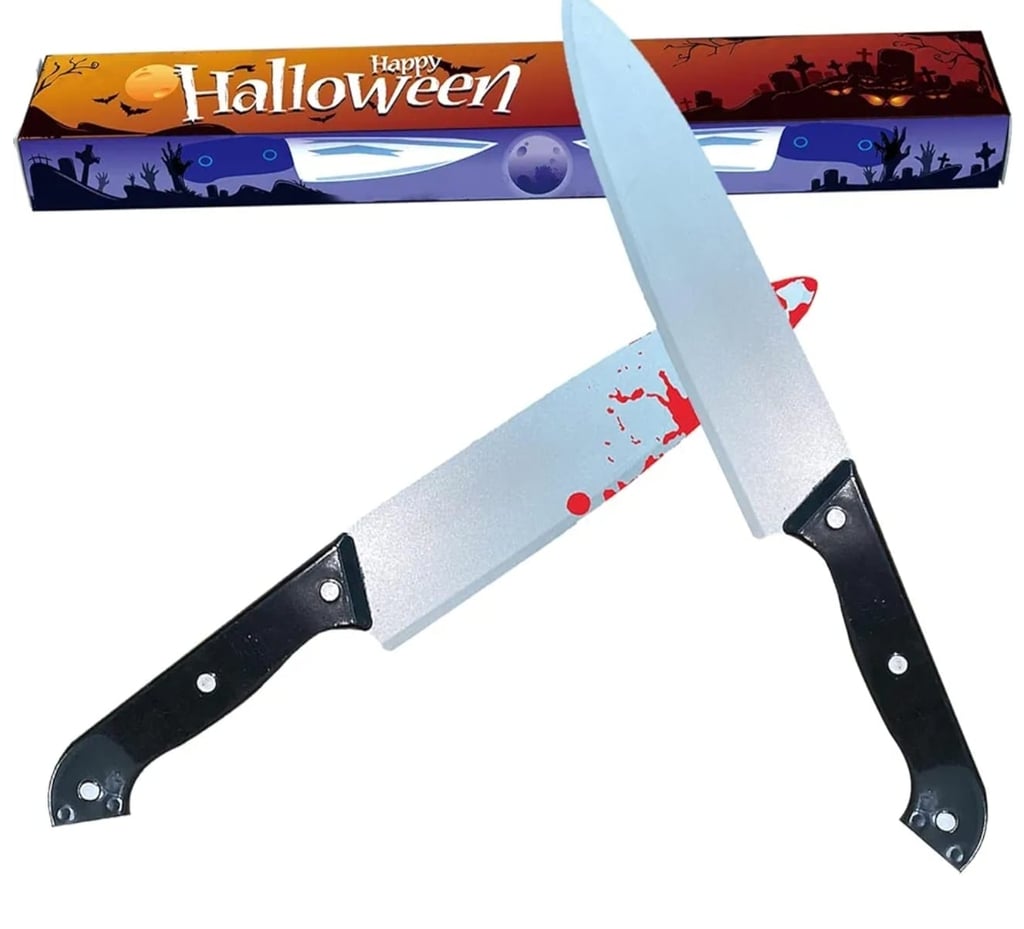 Complete your Halloween horror look with these realistic fake butcher knives. Perfect for costumes, pranks, haunted houses, or parties, they add a spooky finishing touch without any danger. Durable, lightweight, and safe for all-night scares.
