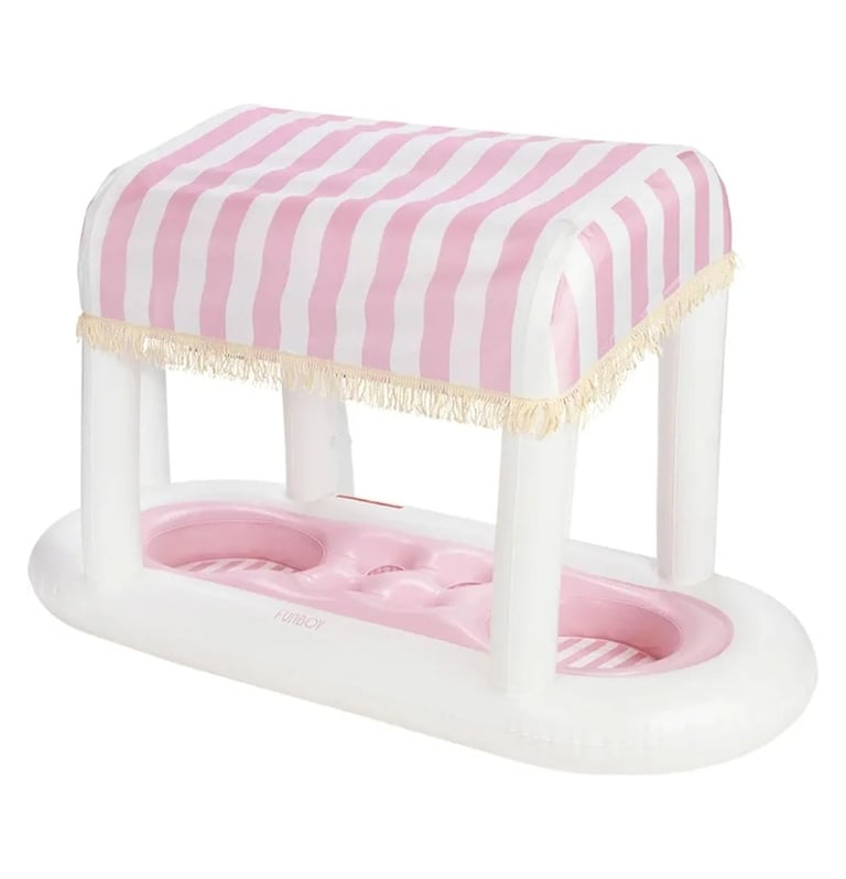 The FUNBOY Giant Floating Cabana Drink Station is a stylish, functional centerpiece for pool parties. With its eye-catching cabana stripe design and removable fringe shade, it keeps drinks cool and accessible while adding flair. Spacious and stable, it holds multiple beverages and snacks, making it ideal for floating refreshment. Perfect for adults and kids alike, this inflatable bar brings fun, relaxation, and Instagram-worthy vibes to every summer gathering.