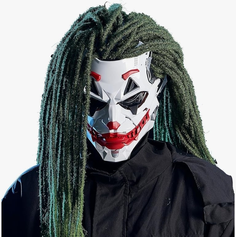 Step into the spotlight with this Futuristic Clown Mask — a striking blend of modern tech vibes and eerie circus style. Perfect for cosplay, Halloween, or themed parties, its sleek white and red design adds a bold, mysterious edge to any costume.