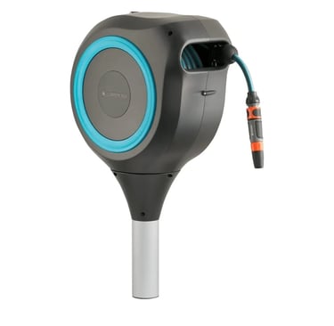 The GARDENA 66-foot retractable hose reel offers effortless garden watering with its 360° metal spike base—ideal for full-range coverage. The auto-retract mechanism keeps your hose neat and tangle-free, while the durable metal housing withstands outdoor use. At half-inch diameter, it delivers strong water flow, and the swivel feature ensures flexible positioning. It’s easy to install and perfect for maintaining flower beds, lawns, or vegetable patches. A tidy, efficient solution for hassle-free outdoor watering.