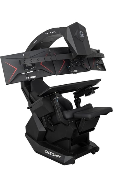 The IMPERATOR WORKS EASECOMFY T2 Throne Computer Cockpit is the ultimate setup for gamers, creators, and professionals who want both power and luxury. Designed to support up to 5 monitors or a 49” ultrawide, it delivers a truly immersive workstation experience.