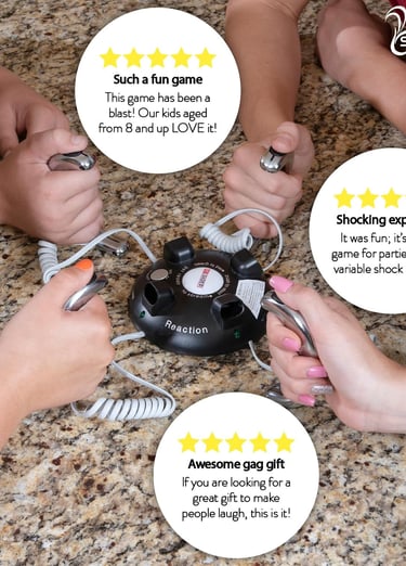 Fast reflex party game with adjustable electric shocks and suspenseful fun.