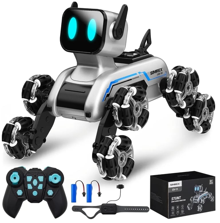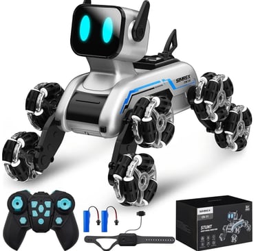The Robot Dog RC Stunt Car combines fun robotics with exciting stunts. Featuring gesture sensing control, Mecanum wheels, glowing LED eyes, and 3 fun sound effects, it delivers endless entertainment. A perfect interactive birthday gift for kids who love cars, robots, and tech toys.