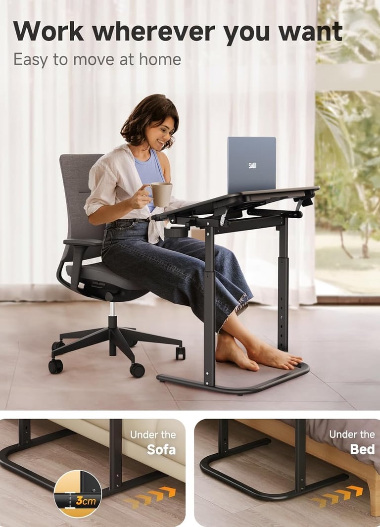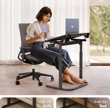 The SAIJI XXL Extra Large TV Tray Table offers comfort and versatility for eating, working, writing, or drawing. With height and tilt adjustments, a built-in LED light, cup holder, and bookstand, it’s the ultimate multifunctional recliner companion. Heavy-duty construction ensures long-lasting stability.