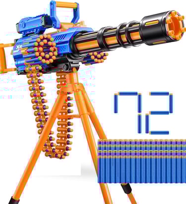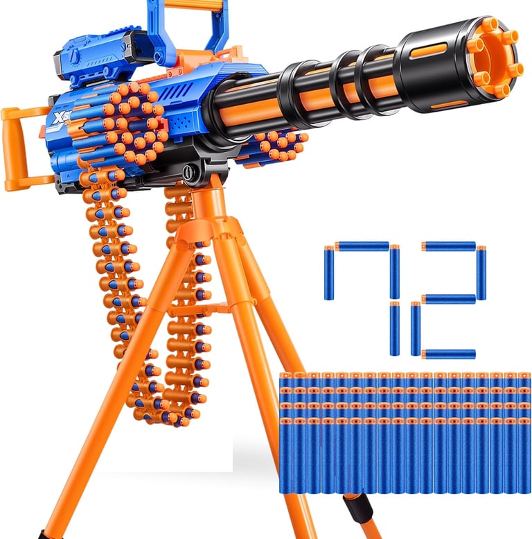 The XShot Insanity Motorized Rage Fire is a powerhouse foam blaster designed for epic outdoor battles. With a motorized system that fires up to 40 darts continuously, an auto-feeding belt, and a full 360° rotating tripod, it delivers intense action for kids, teens, and even adults. Air Pocket Technology darts boost range and accuracy, while modular dart storage and a scope complete the ultimate battle setup.