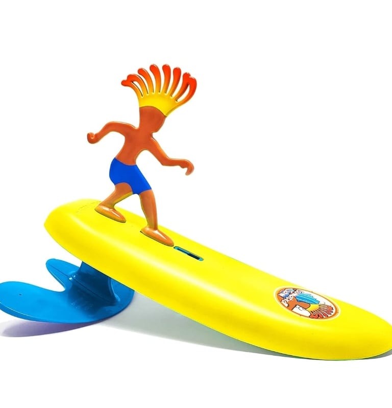 The Surfer Dudes Classics Mini-Surfer, featuring Sumatra Sam, brings endless beach fun with its wave-powered action. Just toss it into the surf and watch it ride the waves back to shore—no batteries needed. Built for durability and excitement, it’s safe, colorful, and perfect for kids and adults alike. A great beach companion that blends play with the power of the ocean.