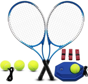 This Tennis Racket Set is ideal for adult players at any skill level. Whether you're just starting out or sharpening your game, it includes everything you need: two durable rackets, four high-quality tennis balls, three overgrips for added comfort, and a convenient carry bag. The rackets are well-balanced for powerful and controlled shots, offering a smooth playing experience. Lightweight yet sturdy, they help reduce arm fatigue while improving accuracy. With its all-in-one design, this set is perfect for recreational games, casual matches, or practicing your swing. It’s also a great gift idea for any tennis enthusiast.