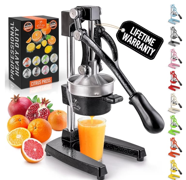 Experience the power and efficiency of the Zulay Kitchen Cast-Iron Orange Juicer — built for serious juice lovers. Its heavy-duty stainless steel and ergonomic manual press make squeezing oranges, lemons, or limes effortless. Easy to clean and designed for durability, it’s the perfect kitchen essential for fresh, delicious juice every morning.